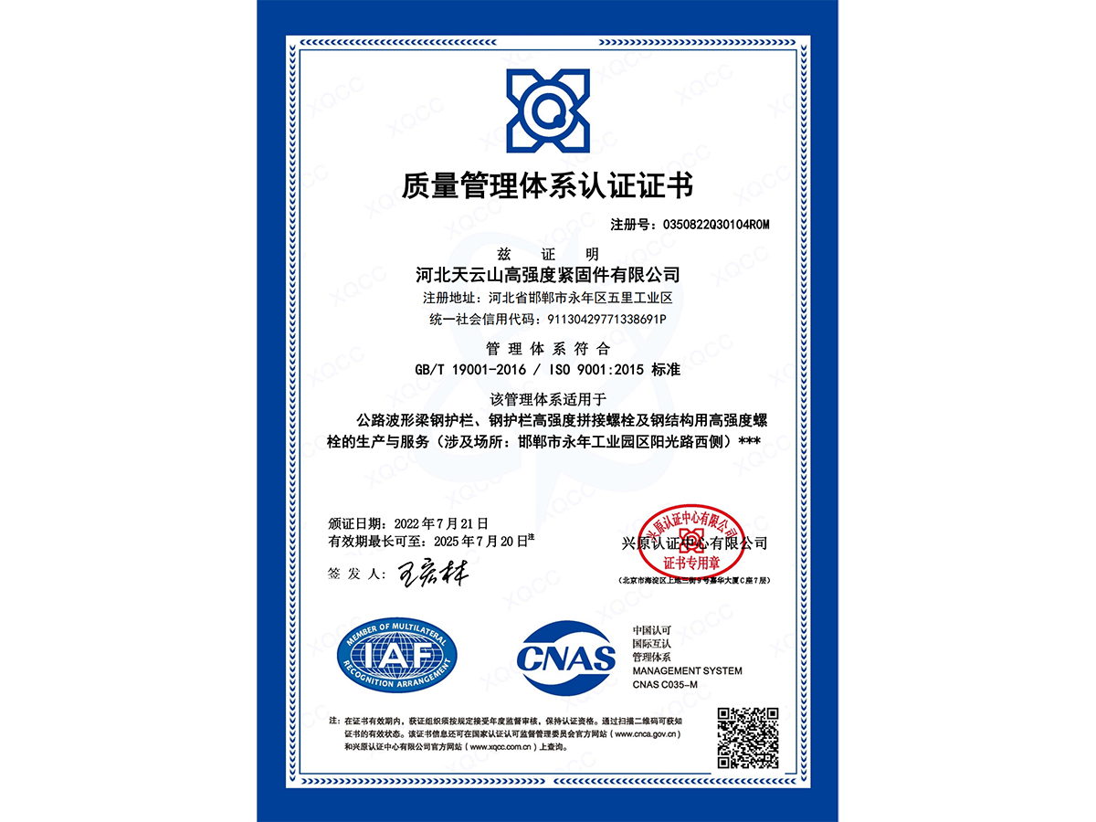 質(zhì)量管理體系認證證書