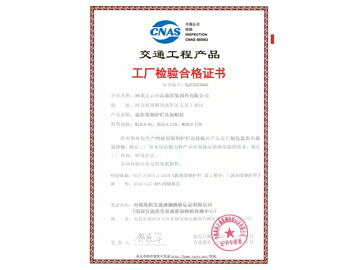 連接螺栓工廠檢驗合格證書