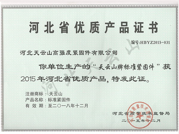 優(yōu)質(zhì)產(chǎn)品證書
