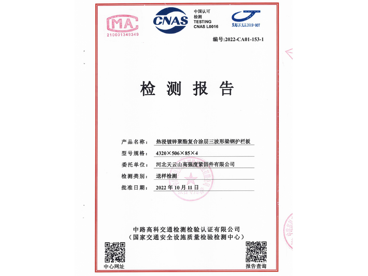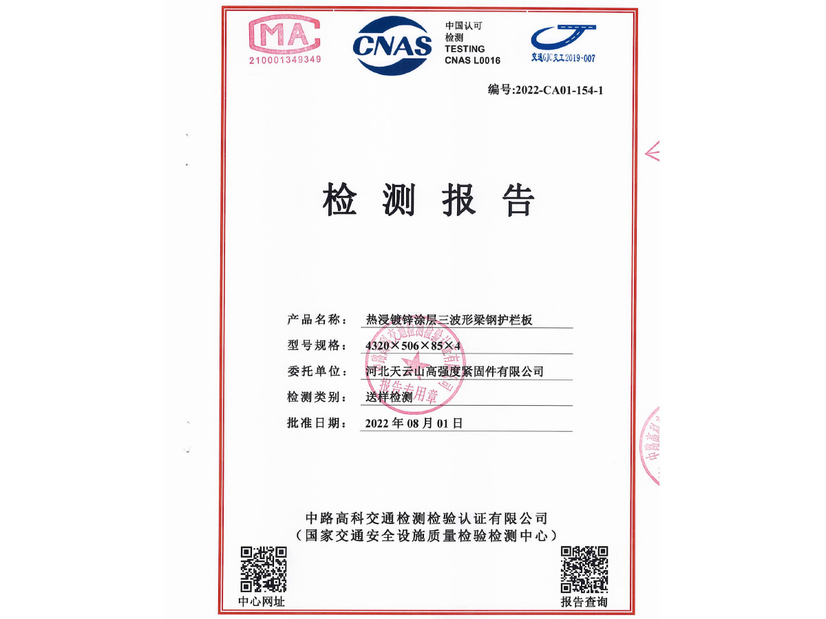 鍍鋅三波形梁鋼護(hù)攔板檢測(cè)報(bào)告